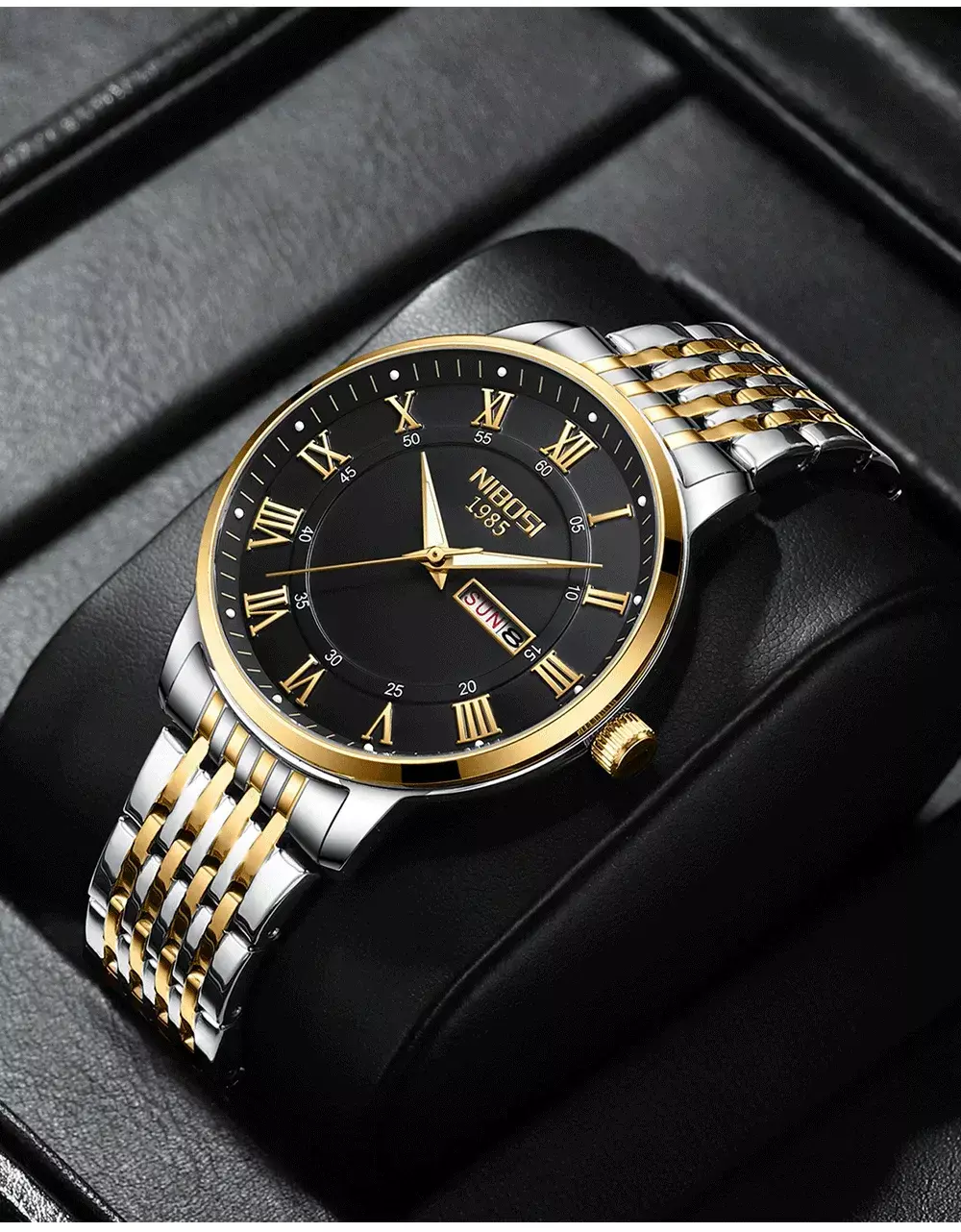 O Nibosi foi projetado para o homem moderno, que busca eficiência e sofisticação no dia a dia. Seu mecanismo de quartzo garante alta precisão e funcionamento contínuo, enquanto o cronômetro e o calendário completo mantêm sua rotina sob controle.